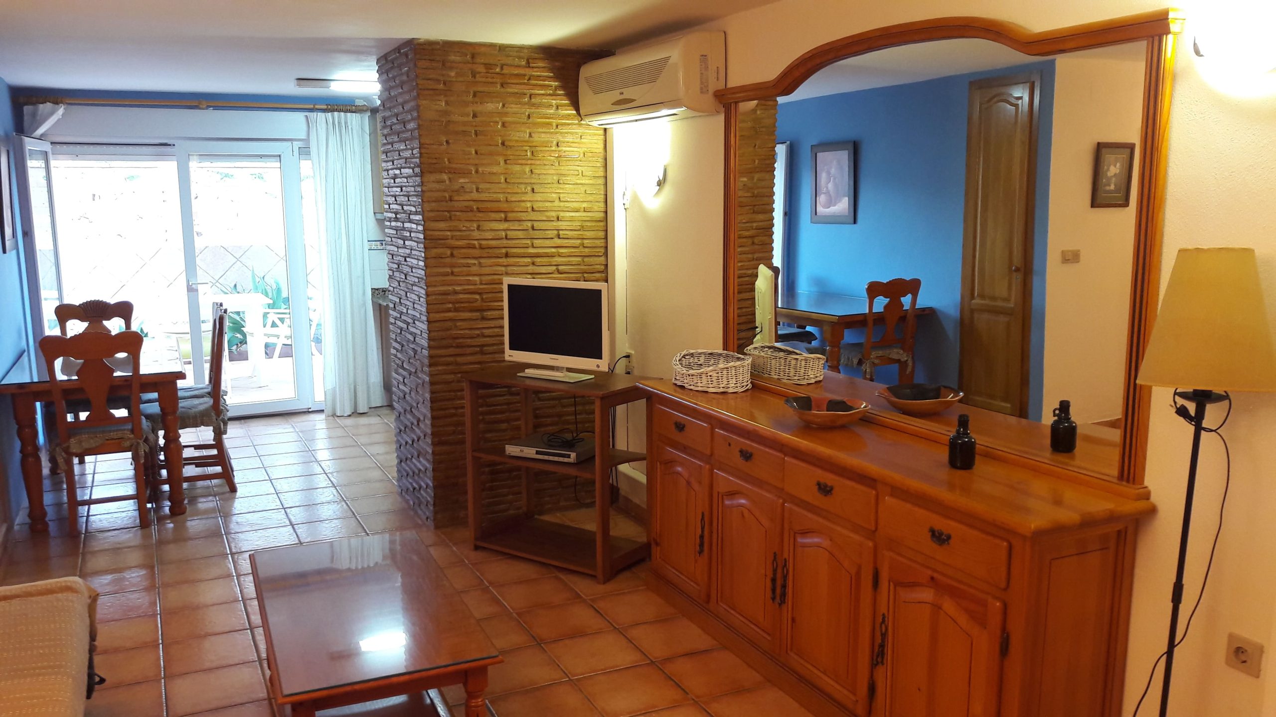 Bajo en 1ª linea de la playa de Oliva. Ideal para 4 personas. Con salida directa a la playa con gran terraza frente al paseo y zona verde que linda con la duna de la playa, playa de arena fina y orilla del mar con pendiente suave, ideal para paseos y que jueguen los niños. Consta de dos habitaciones, baño, salón y cocina.