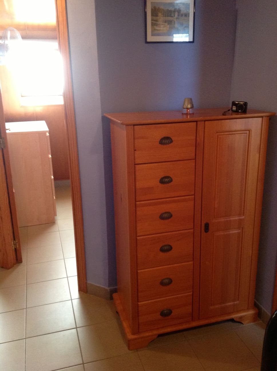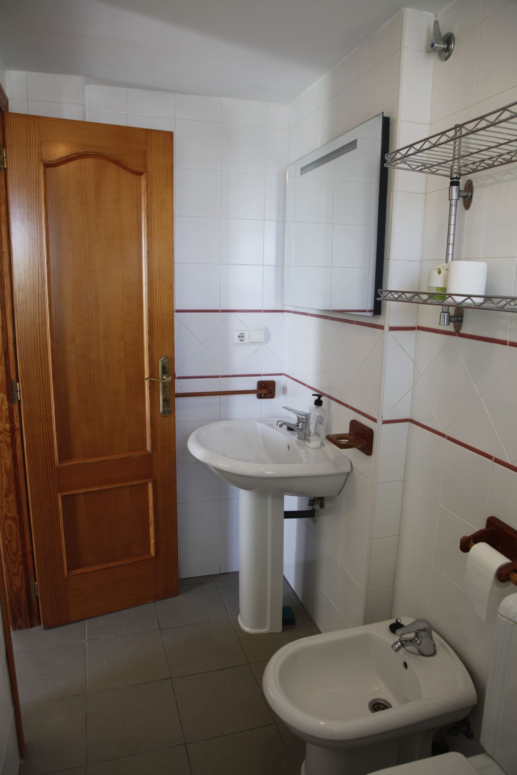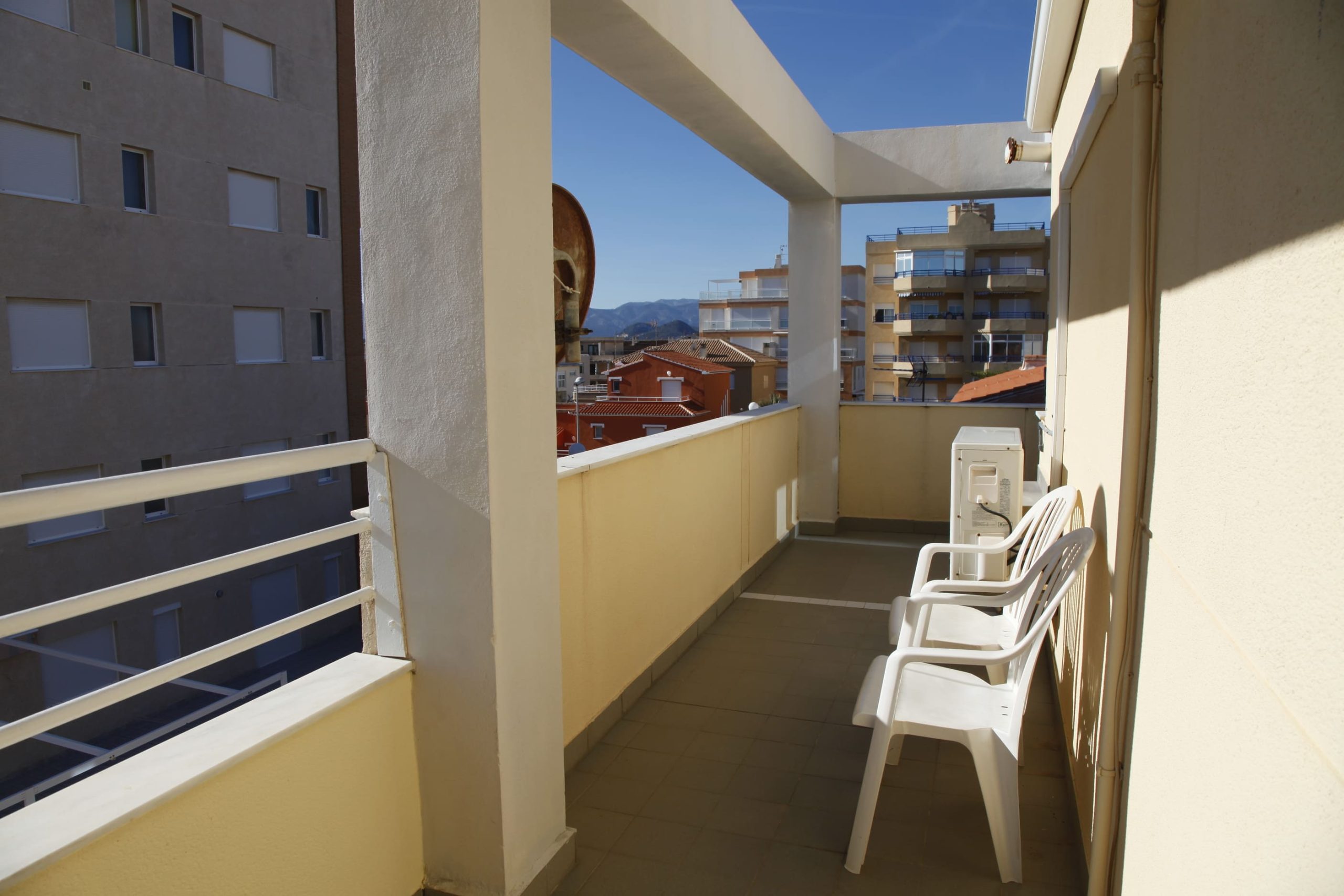 Ático dúplex de 2 plantas: en la de abajo cocina comedor, cuarto de baño y una gran terraza con vistas al mar y a la montaña que rodea todo el apartamento. En la de arriba tiene 3 habitaciones (una hab. de matrimonio, una cama de 105 cm y otra con una cama nido) y otro baño.